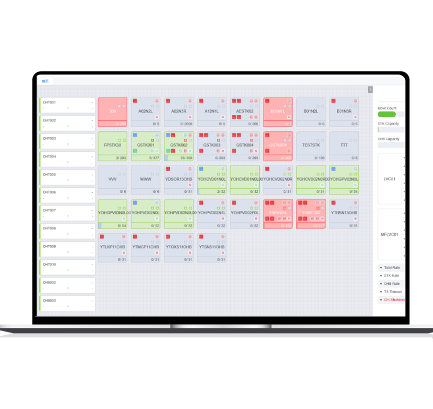 1. The software manages the handling orders issued by MES, carries out efficient path management, and designs automation mechanisms to eliminate AMHS abnormal conditions. This enables the control and monitoring of the production process.
